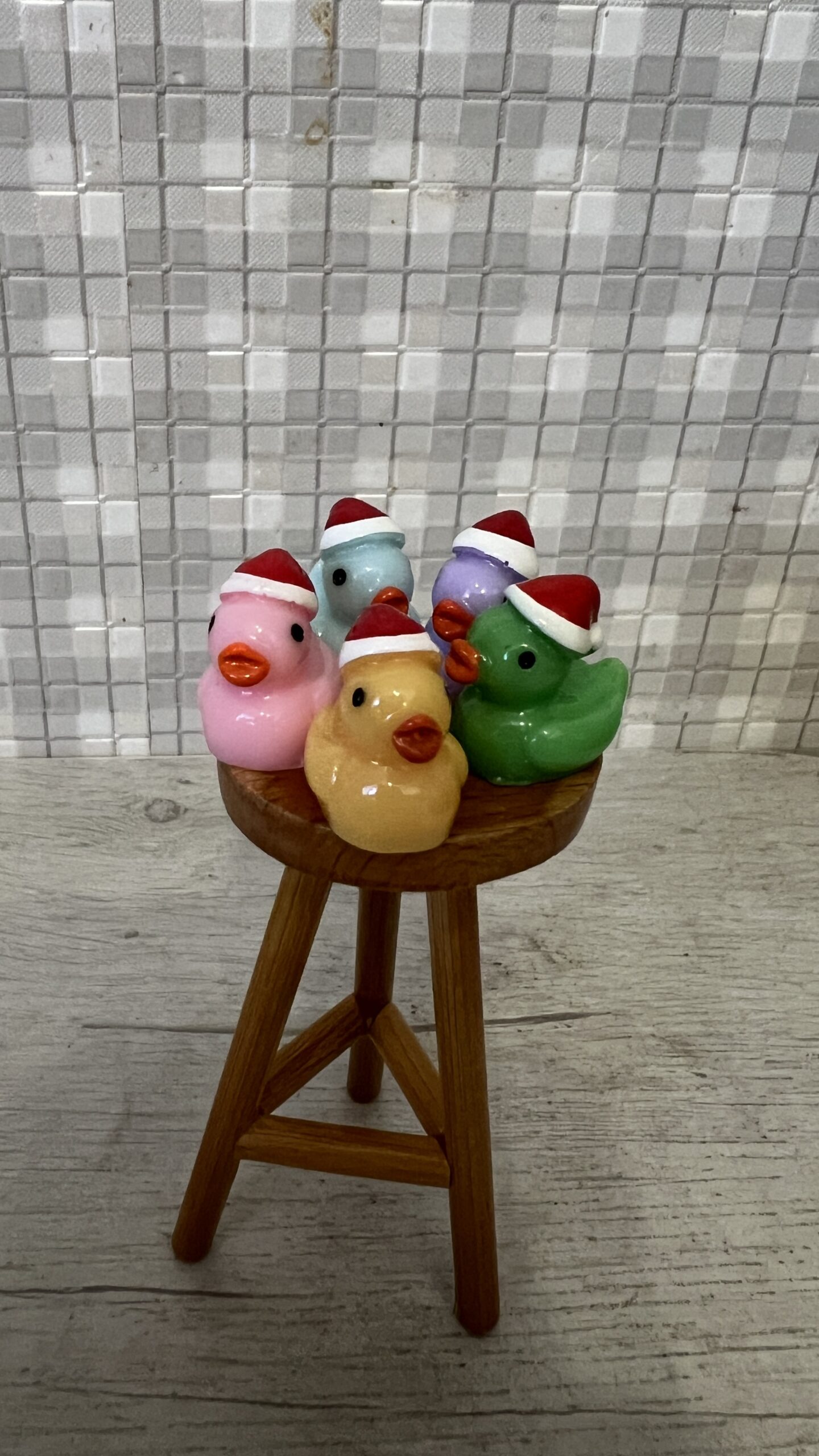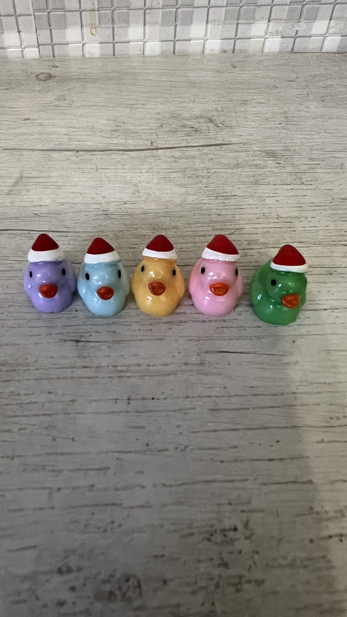 Small Christmas ducks with red hats